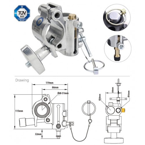 Держатель T.V. Coupler разработан для установки осветительного оборудования, оснащённого 16мм приёмным креплением или 28мм втулкой. Держатель оснащён “предохранительным штифтом”, который пользователь может вставить в предусмотренное отверстие 28мм втулки до того, как полностью затянуть крепление, что позволяет предотвратить неожиданное падение держателя.