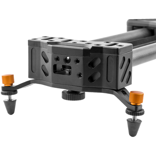 Благодаря регулируемой высоте ножек и пузырьковому уровню вы сможете подобрать идеальное положение слайдера. Отверстия для съёмочного оборудования 1/4" и 3/8" дают возможность закрепить дополнительное оснащение, а также закрепить ES120 на штативе