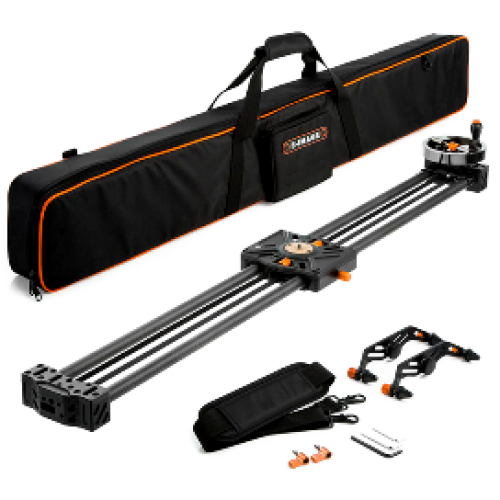 Профессиональный слайдер ES120 поможет снять плавное видео с равномерным смещением ракурса. Особенностью модели является наличие специального ременного привода, позволяющего перемещать камеру простым вращением ручки. Слайдер способен выдержать нагрузку до 6,8 кг, а длина пути составляет 1220 мм