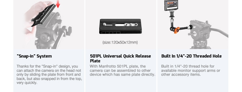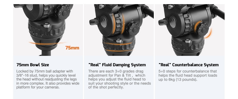Благодаря своей нагрузке до 6 кг и компактным размерам жидкостная головка IMAGE GH06 идеально подходит для поддержки портативных видеокамер DV, DVCAM, HVX и HDV. Головка оснащена встроенным гнездом для аксессуаров 1/4 "-20 и 3/8 ” Со стандартной чашей 75 мм головки могут быть оснащены чашей 100 мм.