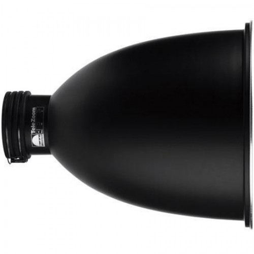 Прямой свет с максимальной выходной мощностью даже на далеких расстояниях. Обладая схожими характеристиками со Стандартным Зум-Отражателем, этот новый отражатель уникален, т.к. угол света варьируется от 20 градусов в положении головы 5 до 30 градусов в положении головы 10. Ровное освещение и высокая выходная мощность света служат дополнительными характеристиками универсальности этого прибора. Теле-Зум Отражатель обеспечивает диафрагму f/90.3 на расстоянии 2 метра в сочетании с генератором мощностью 2400 Дж. Теле-Зум совместим с теми же аксессуарами, что отражатели Magnum и Narrow Beam.